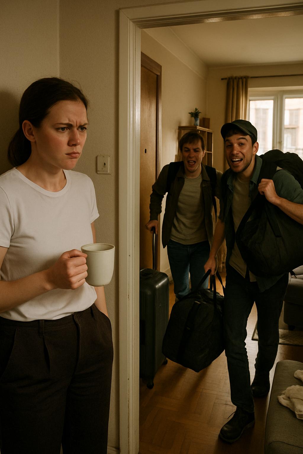 Дверь квартиры распахнулась с таким грохотом, что Ольга едва не уронила чашку с кофе. — Игорь, братан! — прокричал Виктор с порога, таща за собой огромный чемодан. — Мы приехали!