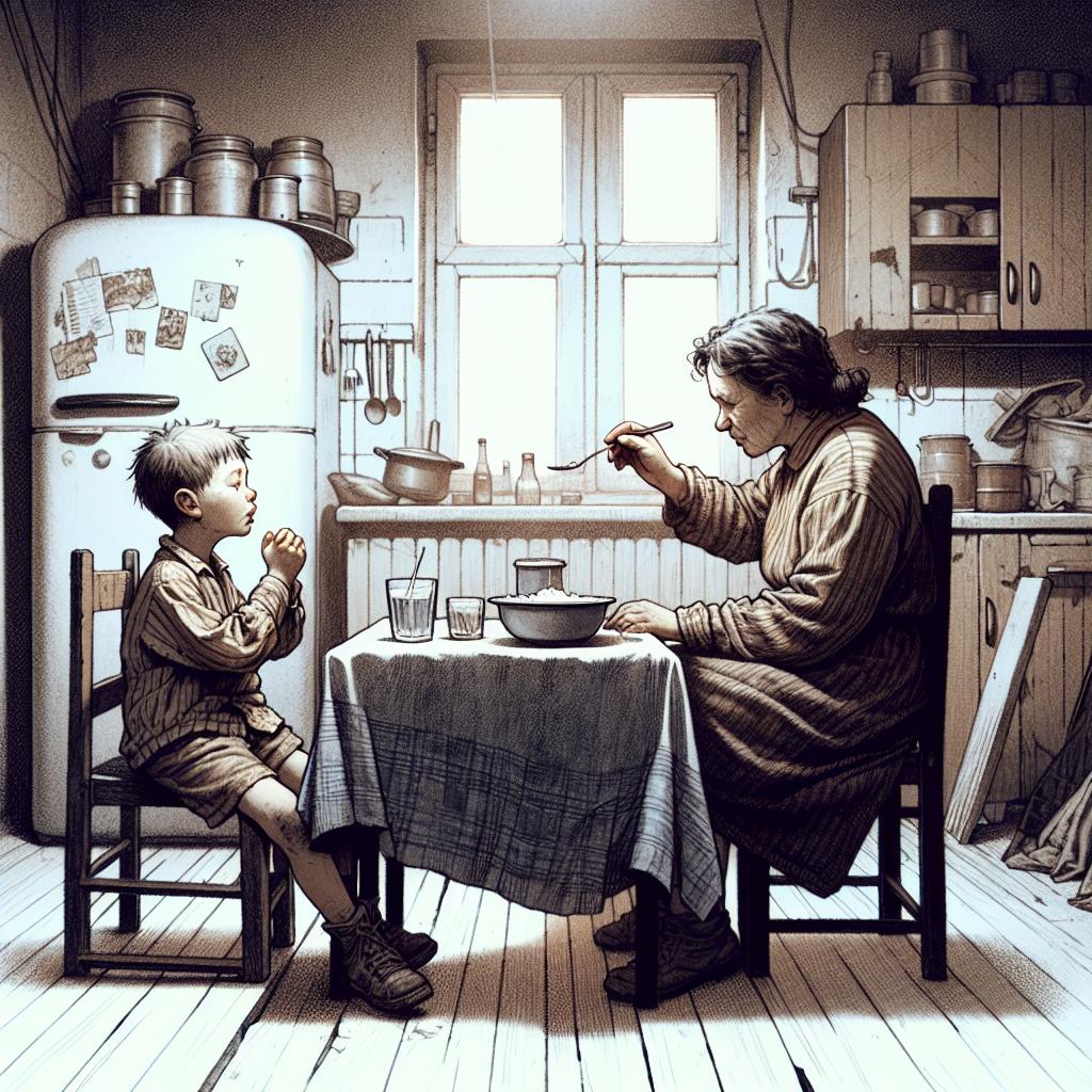 Он потянулся за яблоком, но мама резко ударила его по руке. — Пока не трогай, — строго предупредила она. — Вот придут из органов опеки, посмотрят, что еда есть, тогда сможешь брать. — А хотя бы супчика можно? — тихо поинтересовался Артём. — Ладно, полтарелки.