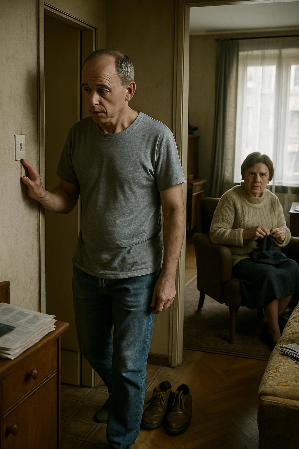 На протяжении обоих дней он ни разу не заговорил о том, где раздобыть чистую рубашку с целыми пуговицами, куда исчезли свежие газеты, почему никто не выключает свет в туалете, кто менял настройки телевизора и окончательно испортил картинку, хотя матч вот-вот начнётся, «какие же тут беспорядки…».