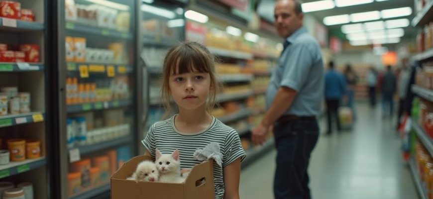На выходе из супермаркета Евгений раскрыл пакет и достал оттуда большую шоколадку. Девочка так и продолжала стоять, продавая котят в коробке: