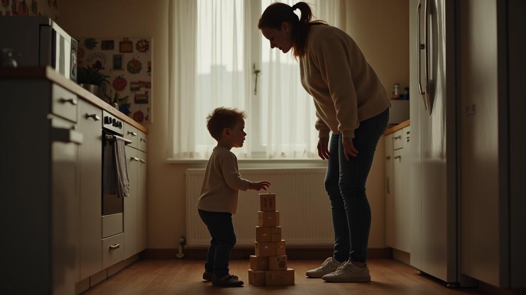 Маленький Денис сидел на полу, строя башню из кубиков, тихо напевая себе под нос.