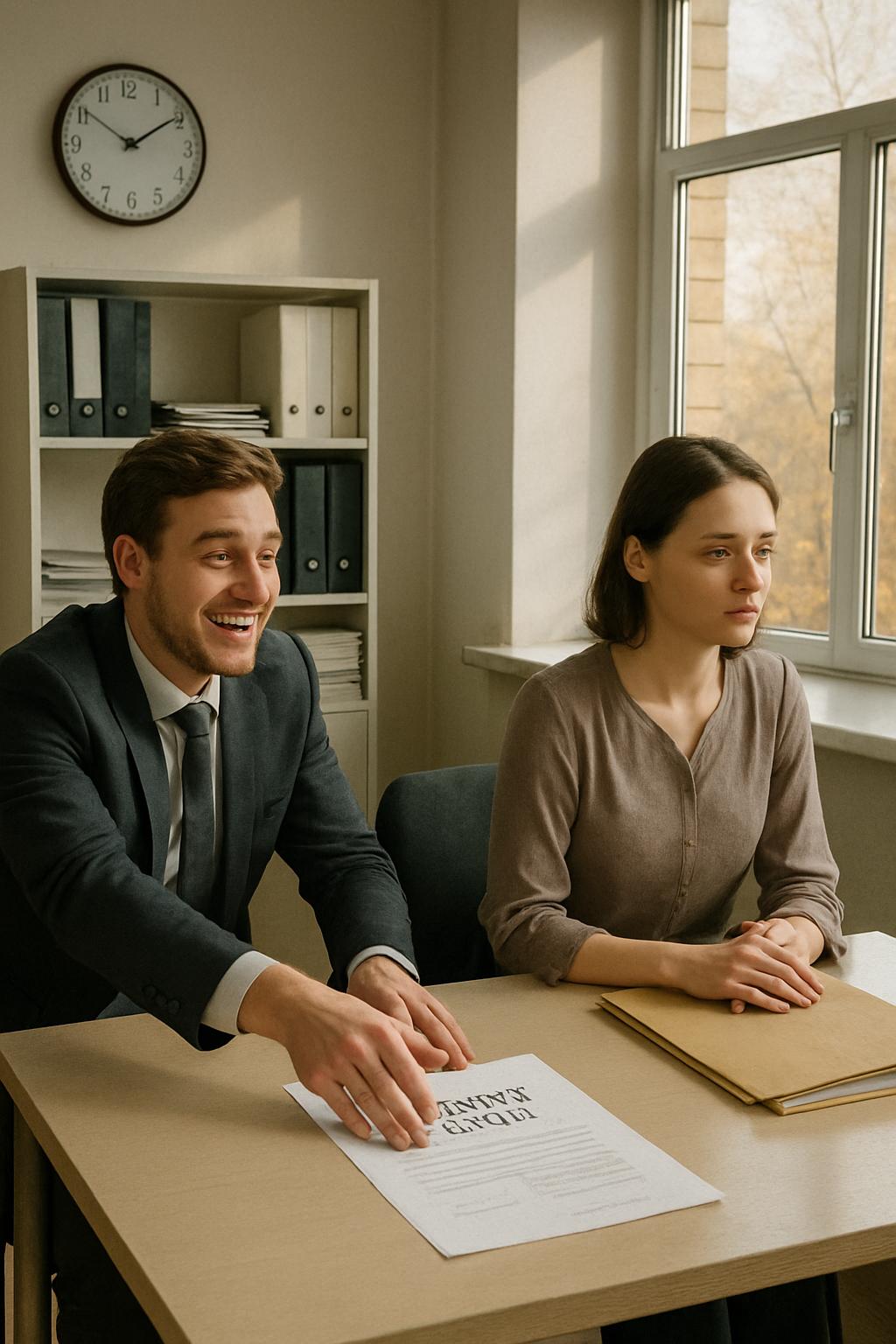 Ольга сидела напротив Игоря, её пальцы медленно перебирали край папки с документами.