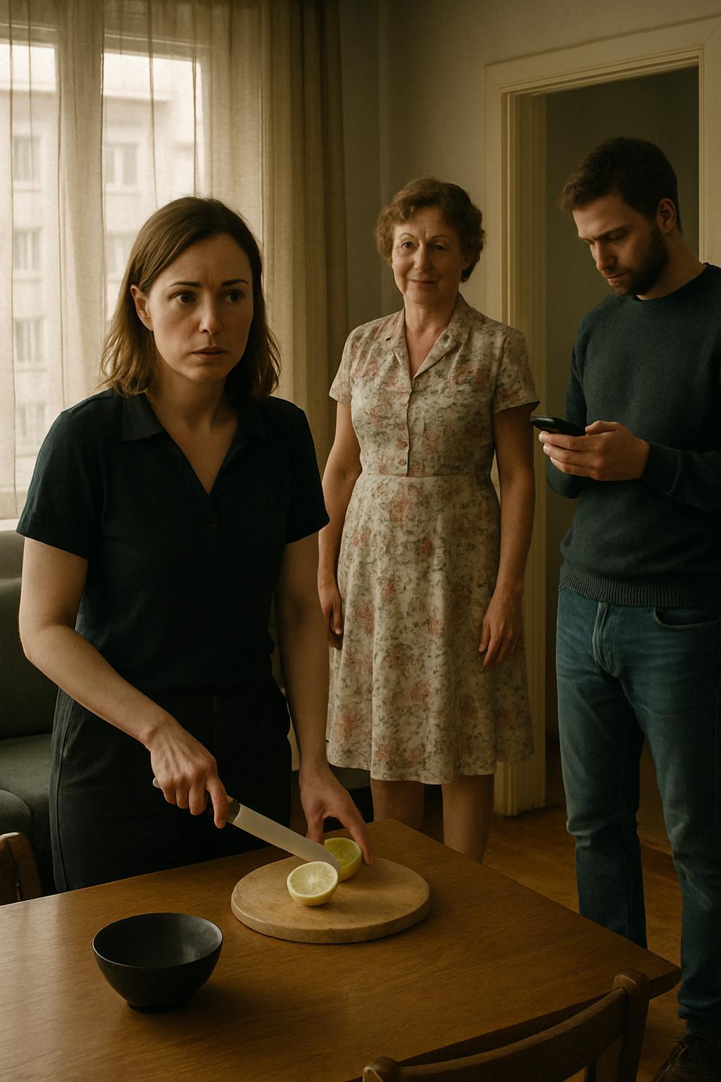 Нож, которым она только что резала лимон, остался неподвижным в её руках.
