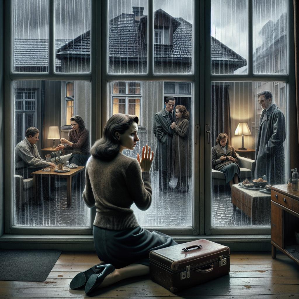 Тамара стояла у окна, прижимая ладони к холодному стеклу. Снаружи дул дождливый ветер, а капли, словно слёзы, скатывались по стеклу, отражая её внутреннюю боль. Позади продолжали звучать язвительные замечания тёти Светланы, сдержанные улыбки Ольги и мучительное молчание Андрея. Чемодан всё так же покоился у порога — как безмолвный свидетель её поражения.