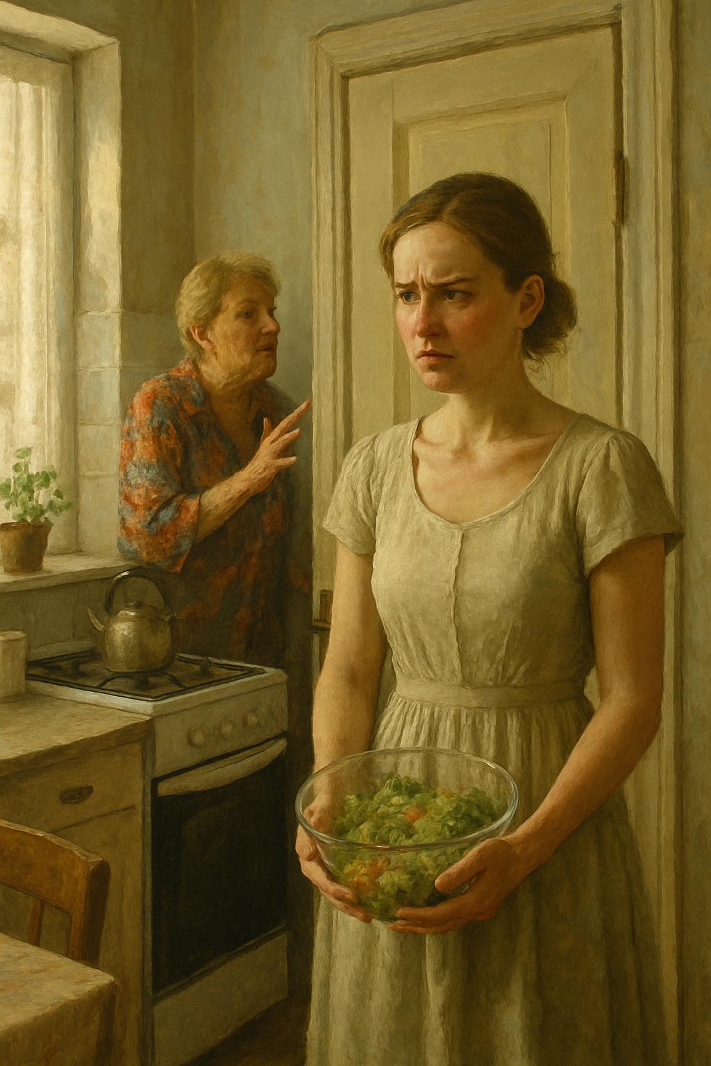 Они зашли на воскресный обед к его матери, и как только Ольга отошла на кухню за салатником, Тамара Сергеевна понизила голос и начала обсуждать её с сестрой. — …совсем не умеет готовить, представляешь? — донеслось до Ольги сквозь приоткрытую дверь. — Александр жаловался, что у них каждый день одни пельмени и макароны.