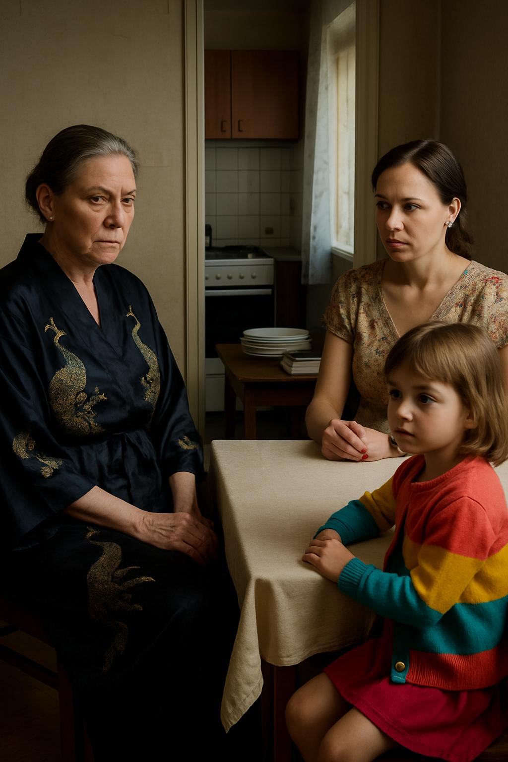 Единственное, что она сделала, – сменила обычный ситцевый халат на длинный шелковый халат с изображением павлинов на чёрном фоне.