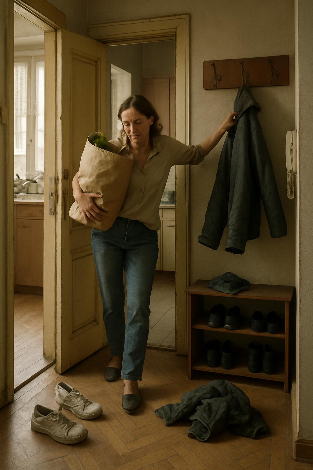 Елена опустила сумку, машинально подняла куртку и повесила её на крючок.