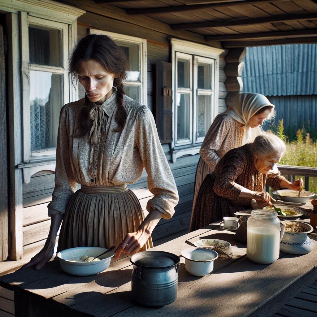 Ольга же кормила себя в одиночестве, когда свекровь была занята хозяйством. Иногда доедала то, что оставалось со стола, чувствуя себя чужой в этом доме.