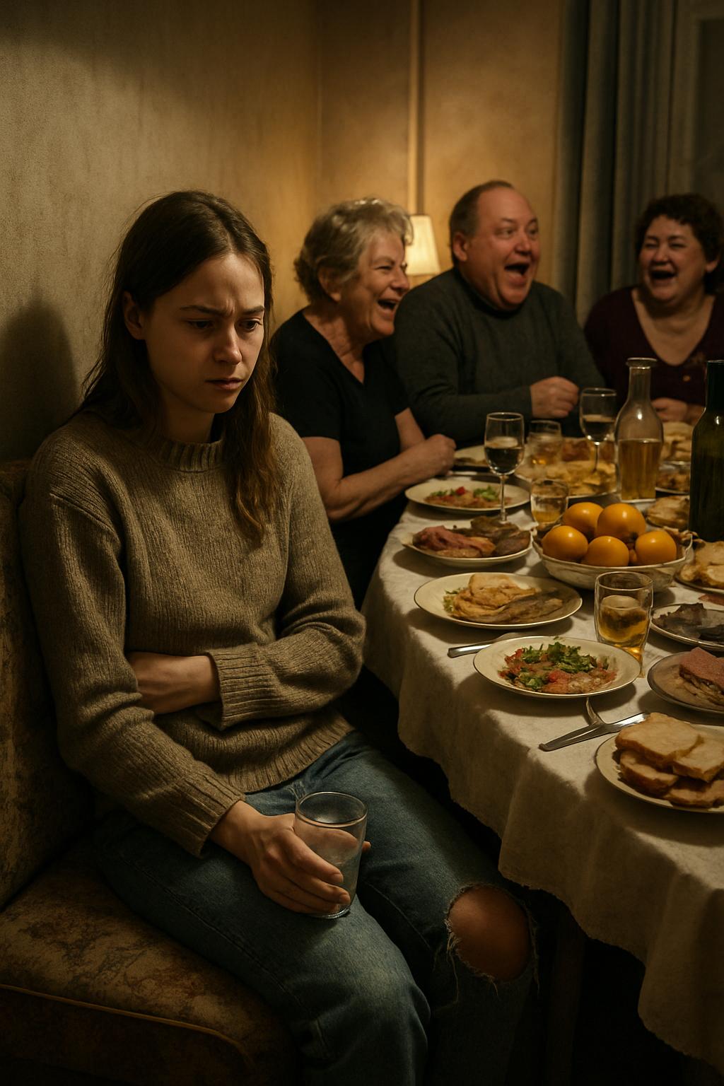 Я устроилась на самом краю, стараясь занимать минимальное место, чтобы случайно не задеть локтем массивную хрустальную вазу, которую тетя Тамара выставила на стол словно трофей. — Елена, ну посмотри на себя! — Тетя Тамара, грузная, в блестящем платье из колючего люрекса, напоминавшего обертку дешевой конфеты, ткнула в мою сторону вилкой с насаженным маринованным грибом. — Свитер-то, наверное, еще со школы носишь?