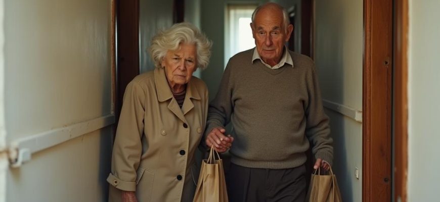 Пожилая пара шла с магазина и несла большие пакеты с продуктами. Им явно было тяжело, они часто останавливались, чтобы немного отдохнуть.