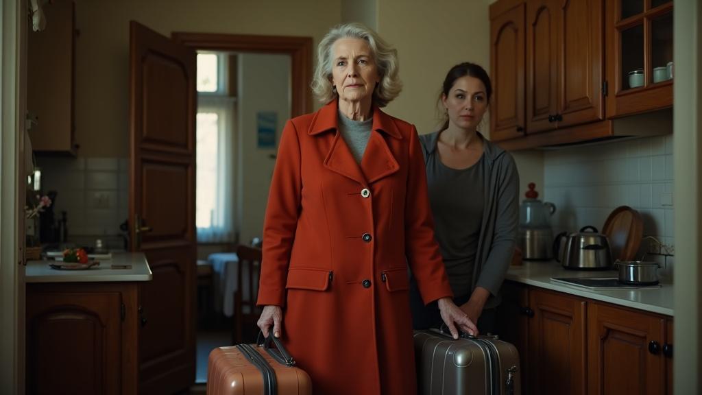 Тамара застыла в дверях своей кухни, глядя на свекровь, которая стояла в прихожей с двумя большими чемоданами.