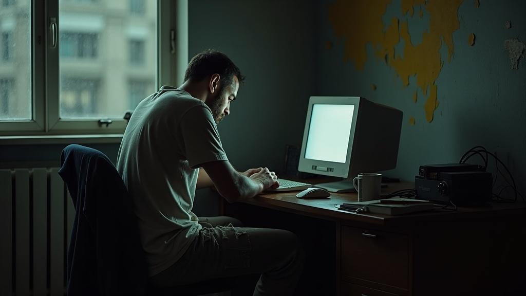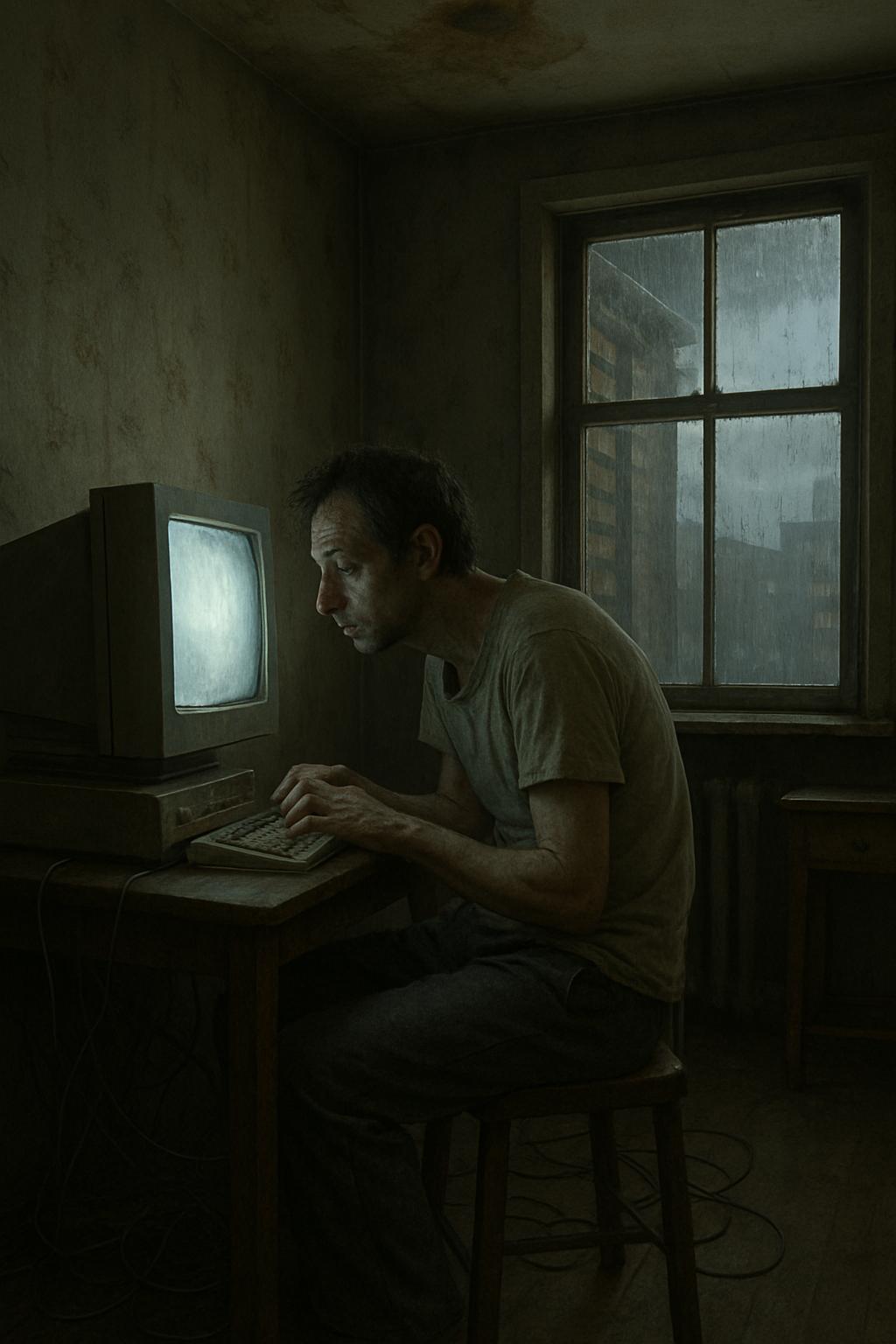 На стекле монитора отразилось слабое изображение — измождённое лицо, мешки под глазами, небритые щеки.