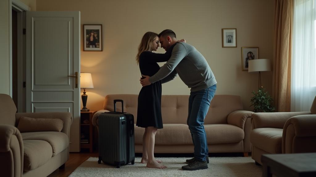 Уже подошел к двери с чемоданом, Яна бросилась к нему в ноги.