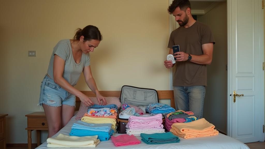 Вокруг неё, словно яркие острова на фоне бежевого покрывала, были разложены стопки летней одежды: легкие сарафаны, шорты, несколько купальников, аккуратно свернутых в трубочки, чтобы сэкономить место.