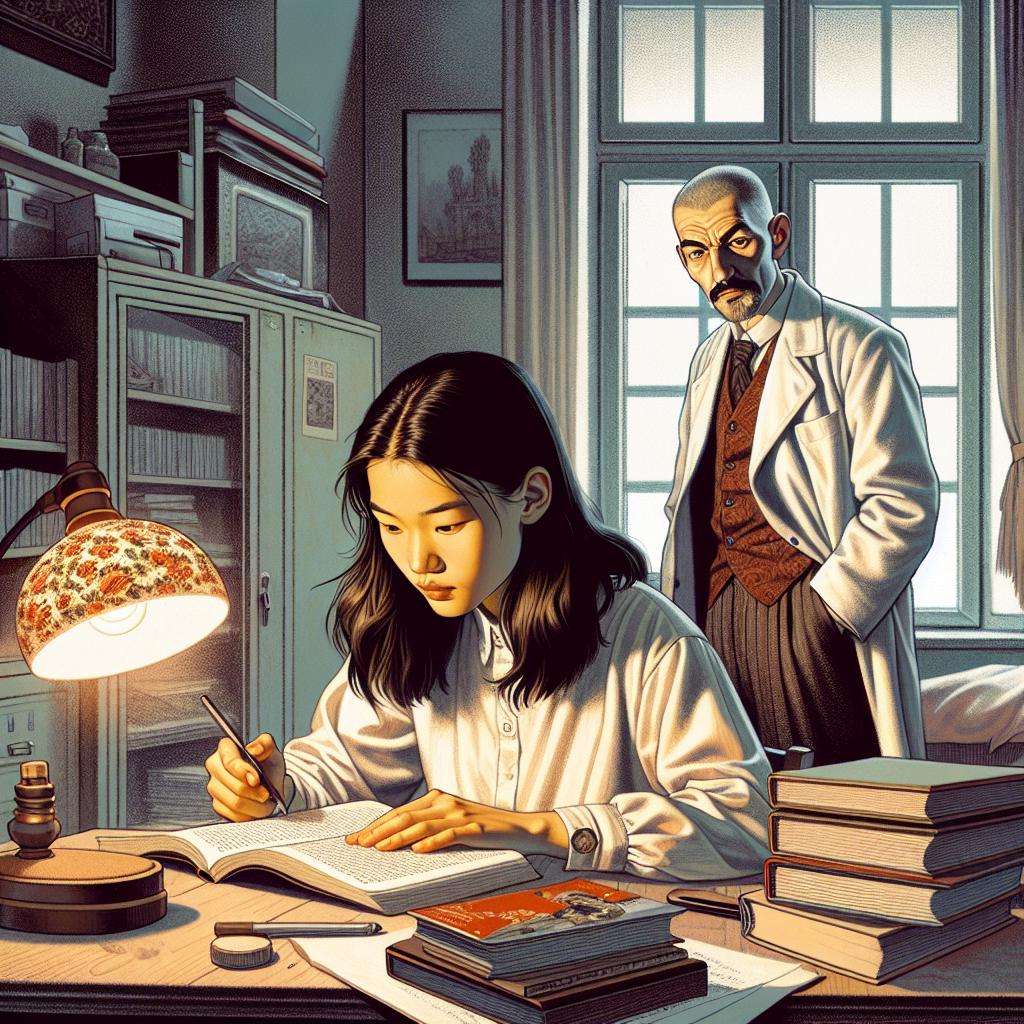 Виктор Николаевич осторожно толкнул дверь и увидел необычную картину: за столом, заваленным учебниками и тетрадями, прямо на раскрытых книгах, с опущенной головой спала девушка.