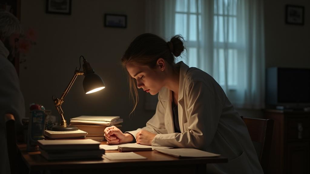 Виктор Николаевич осторожно толкнул дверь и увидел необычную картину: за столом, заваленным учебниками и тетрадями, прямо на раскрытых книгах, с опущенной головой спала девушка.