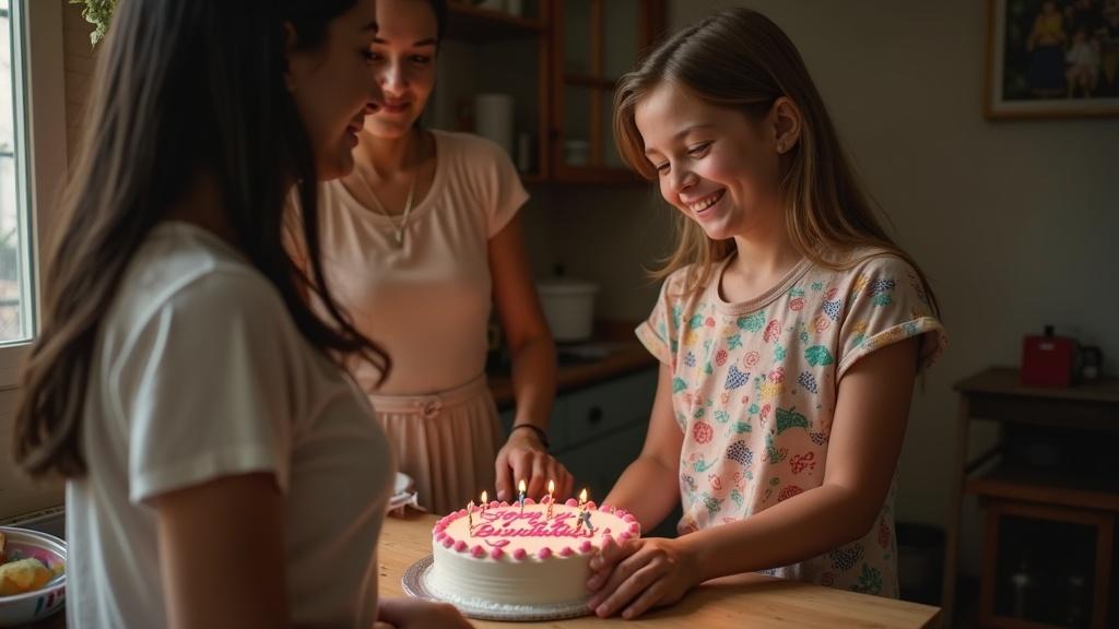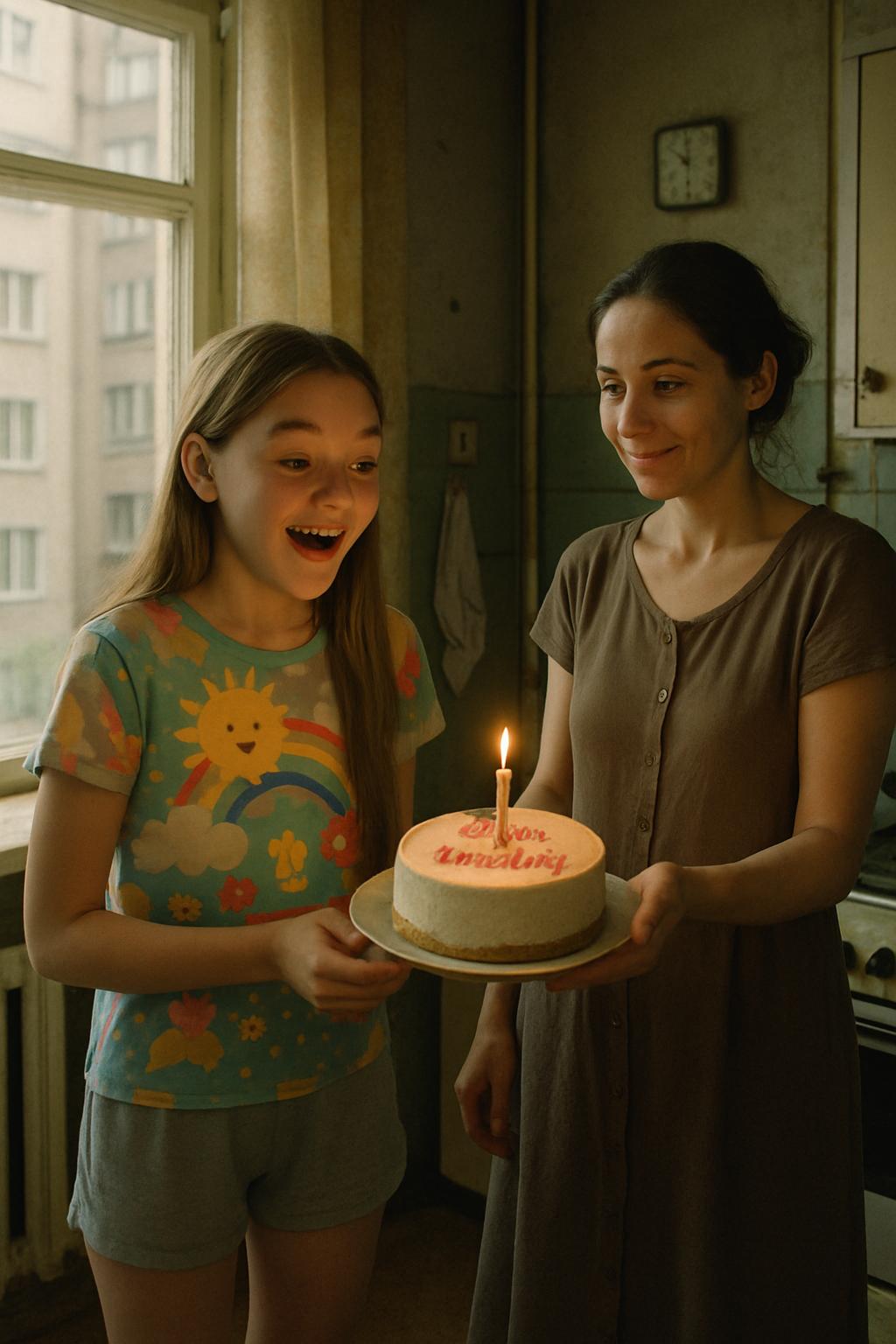 Она уже перестала просить, и вдруг утром, проснувшись, увидела, как мама принесла маленький торт с розовой сахарной надписью. Счастье так переполнило Тамару, что дыхание перехватило, а глаза залились слезами радости.