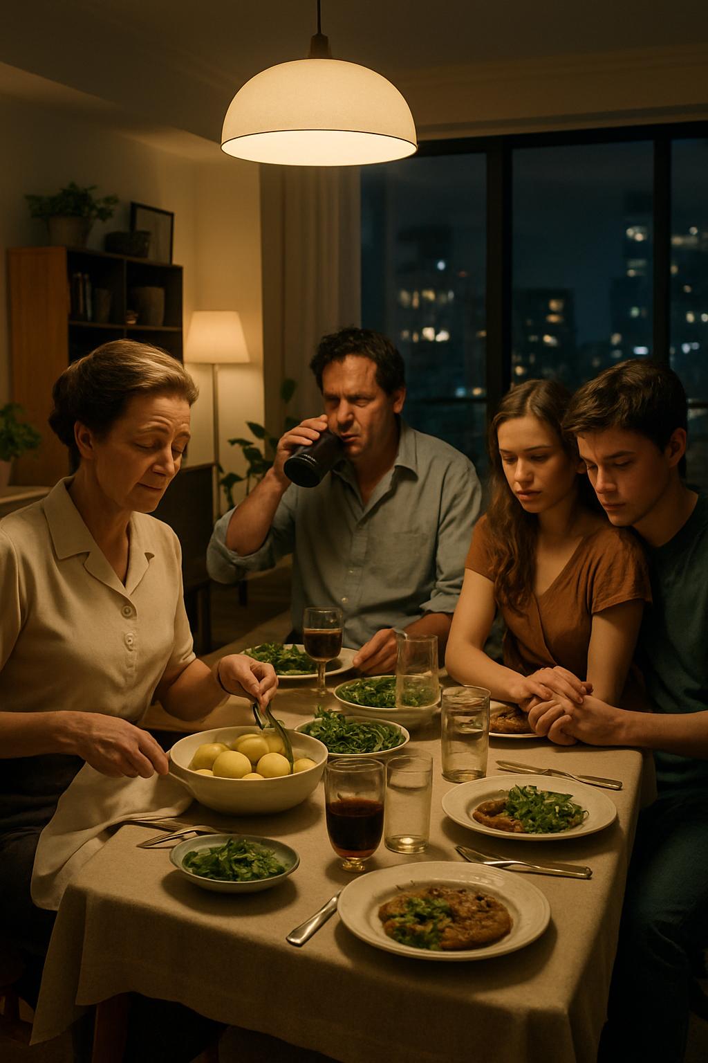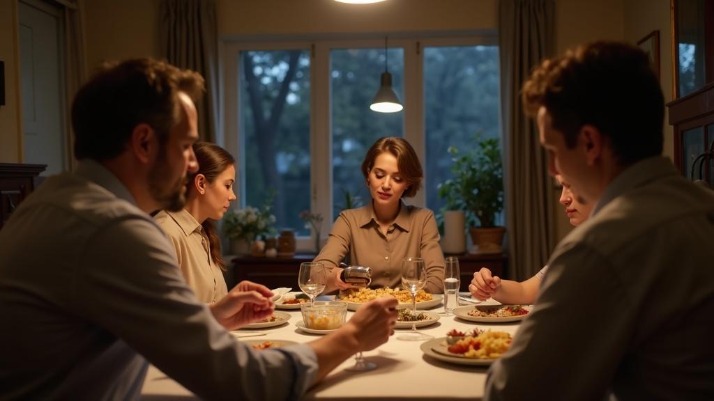 Сын Надежды, Игорь, расположился напротив, выглядел приглушенным и аккуратно ковырял вилкой котлету, стараясь не встречаться с матерью взглядом.