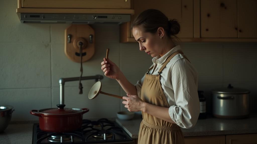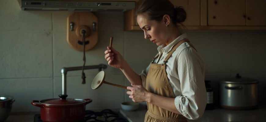 Ольга стояла в кухне с половником в руке.
