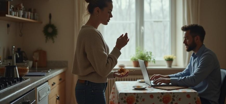 На диване, сосредоточенно уткнувшись в экран ноутбука, сидел Дмитрий. Его чашка с недопитым кофе стояла на полу у края ковра. Он быстро печатал, брови были хмуро сведены, лицо выражало серьезность. Деловой лев в удобных домашних штанах — именно таким она видела его все чаще.