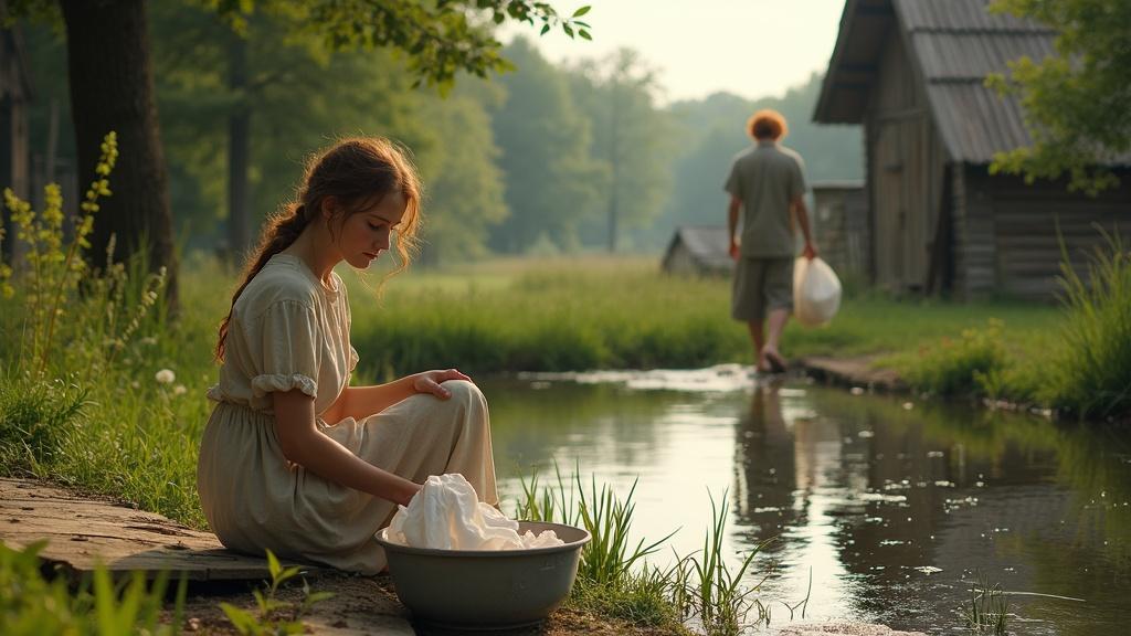 Девушка часто ходила туда полоскать бельё: становилась на колени на мостках и тщательно промывала каждую тряпочку.