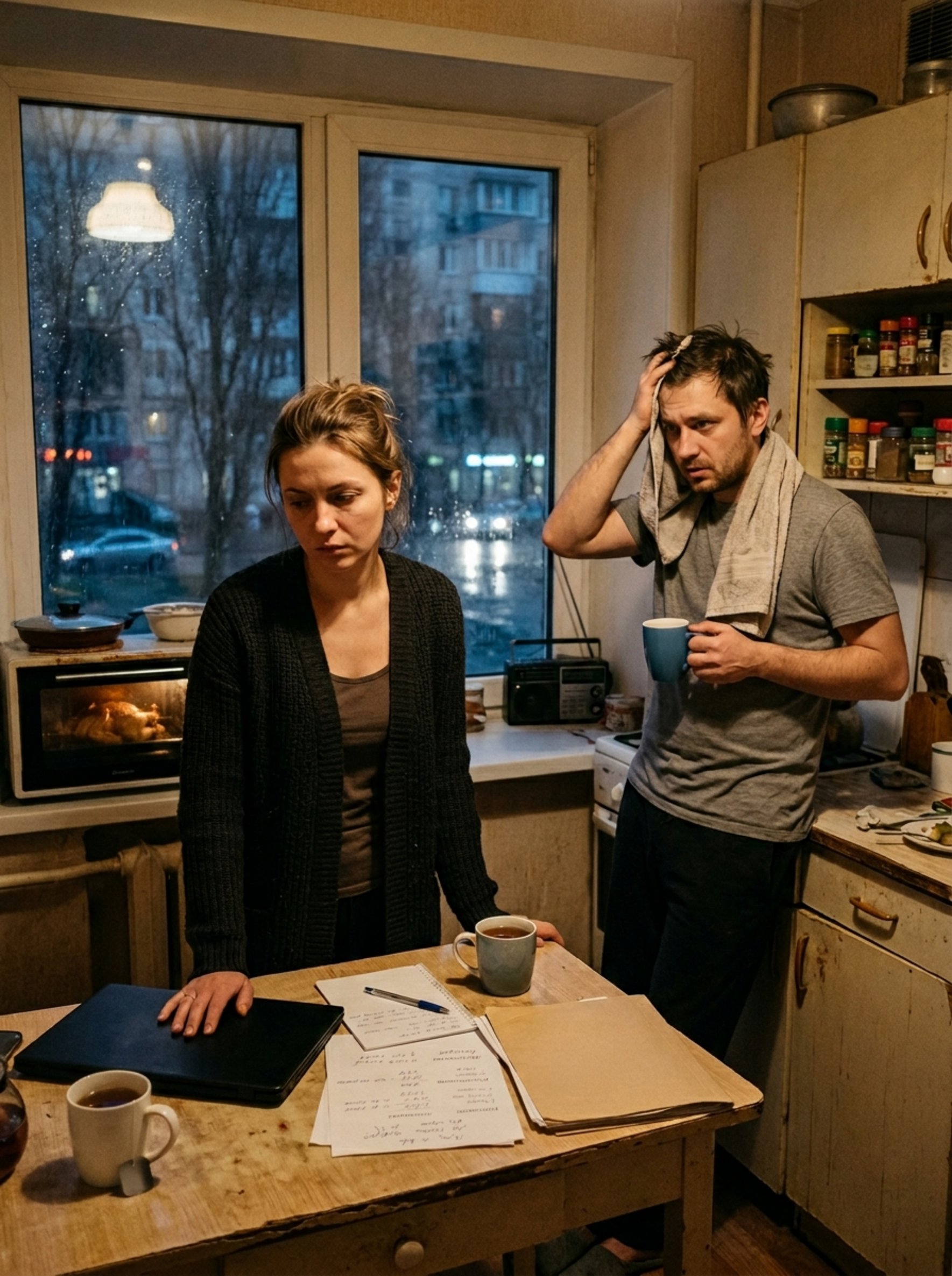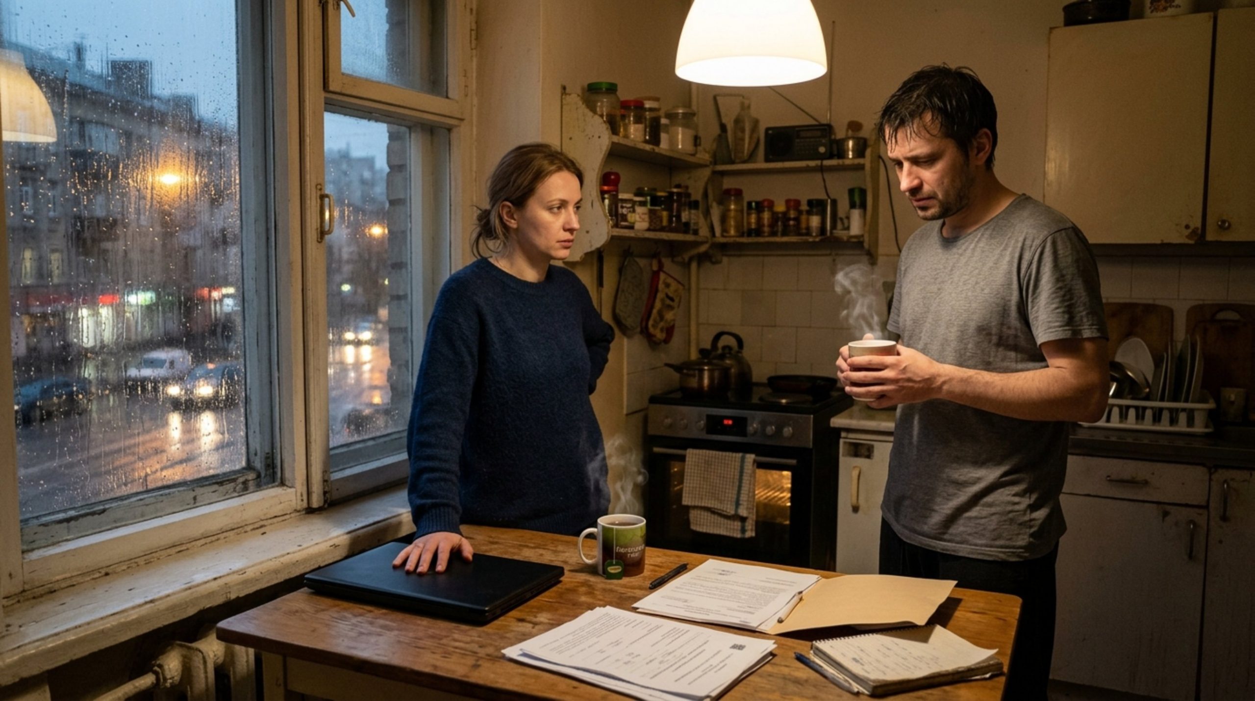Когда Оксана заметила на экране ноутбука строчку «две студии вместо трёхкомнатной», она поначалу даже не соотнесла её с собой. Будто речь шла о чужой семье, о чьём‑то абстрактном переезде. На кухне тянуло запечённой курицей, из мойки мерно капала вода, ложка тихо звякала о металл, а за окном апрель размывал фонари и дома в серой дождевой пелене.