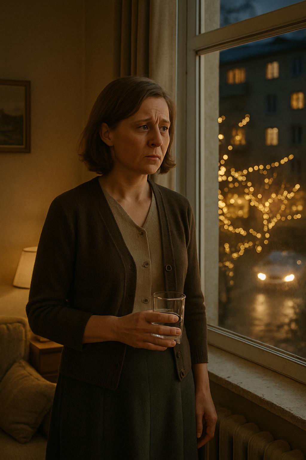 Праздничные огни, мерцающие во дворе, освещали их лица, которые всё ещё были полны оживления после юбилея свекрови.